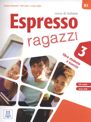 Espresso ragazzi — трехступенчатый курс итальянского языка для учащихся средней школы от 10 лет. Разработан издательством Alma Italy. Соответствует уровням подготовки A1, Base – B1, Intermedio по шкале QCER.